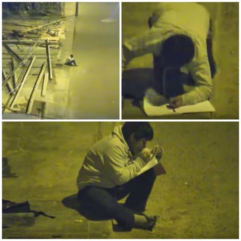 Întins pe asflat, sub un stâlp de iluminat, copilul își făcea temele pentru școală. Imaginile cu el au devenit virale în scurt timp și au fost redistribuite de internauți de mii de ori, ajungând să fie difuzate chiar și de posturile de televiziune.