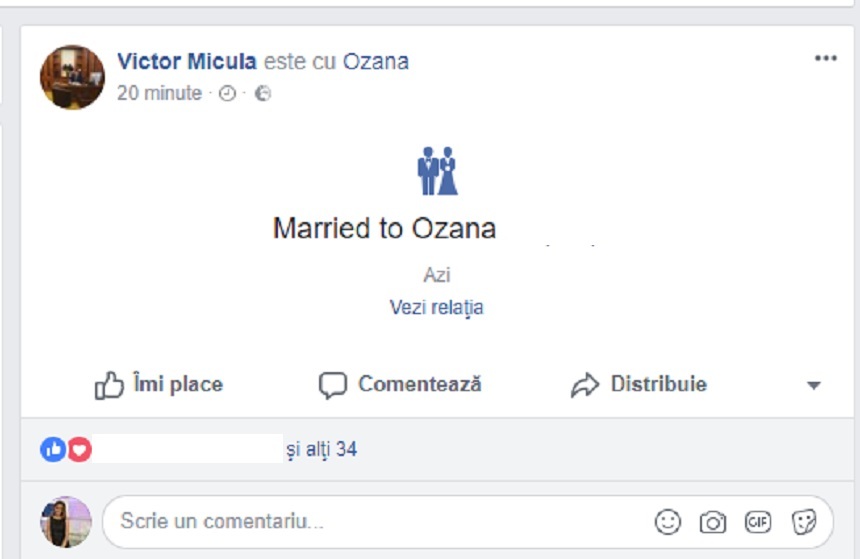 Cei doi s-au logodit in preajma Craciunului, iar vestea cea mare a fost facuta chiar pe Facebook, acolo unde Victoras si-a schimbat statutul relatei din "logodit" in "casatorit".