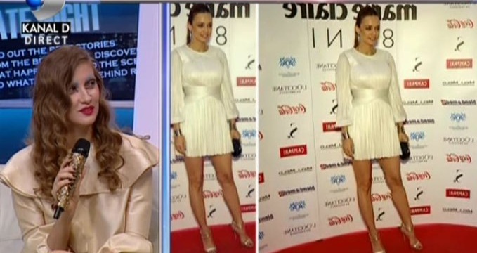 Andreea Balan: Daca s-ar fi intalnit Marilyn Monroe cu Christina Aguillera si ar fi avut un copil cu dizabilitati, acela ar fi Andreea Balan. Dizabilitati stilistice, la asta ma refeream! Apreciez ca nu-si arata nici fundul si nici sanii. Incercarile ei sunt intr-un sens pozitiv dupa acele rochii imprumutate si cu etichetele pe ele. E de apreciat ca plicul ei este albastru! Nu m-as fi gandit ca ea o sa poarte vreodata un plic asortat cu rochia. Ar putea sa poarte pantofi de brand, nu de duzina. Va primi o nota de 2!