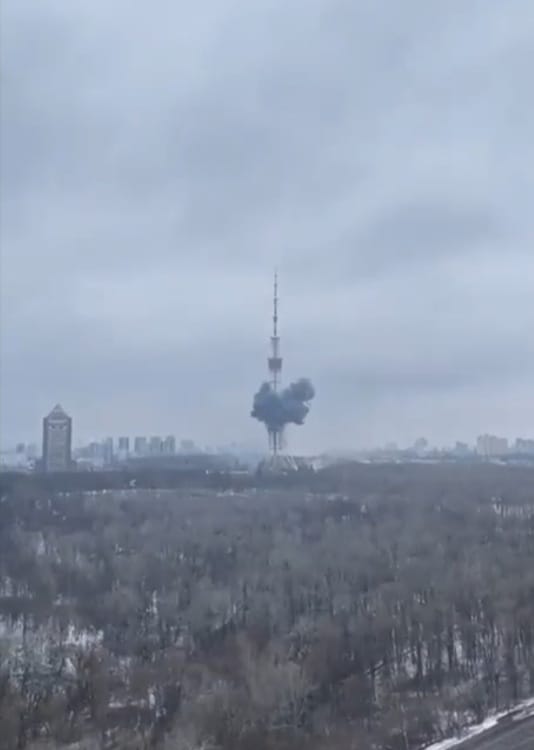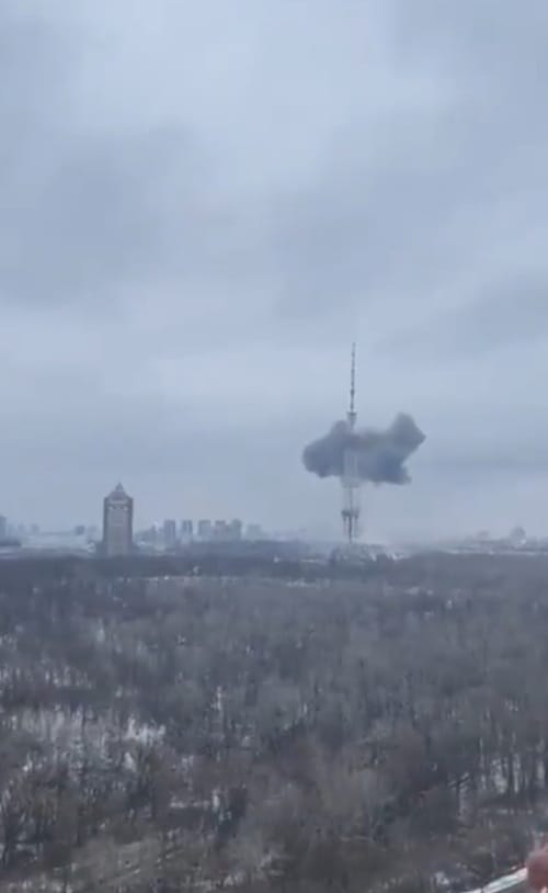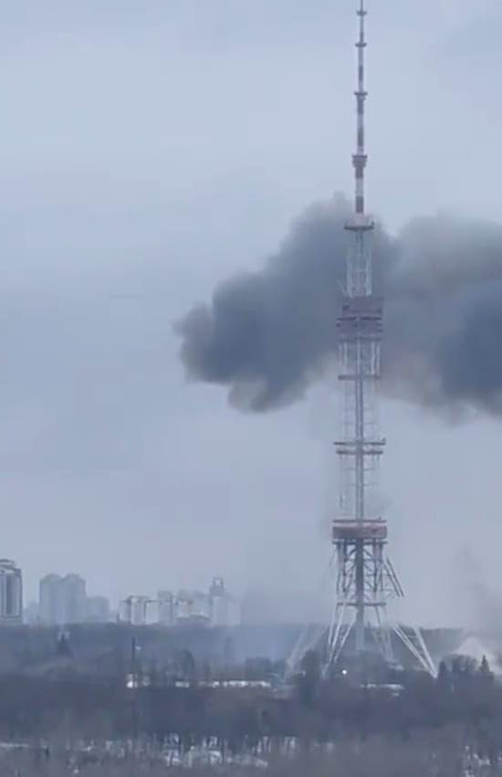 Russian forces have just fired at the #Kyiv TV Tower.#StandWithUkraine #StopRussia #StopPutinNOW pic.twitter.com/Prf3WMB4gt
