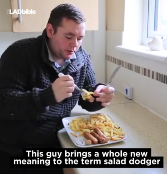 Daniel Pennock, un tanar din Marea Britanie de 26 de ani sustine ca timp de 22 de ani mananca zilnic cartofi prajiti si carnati. Mai mult decat atat, tanarul a declarat ca i se face rau daca incearca sa consume orice altceva.