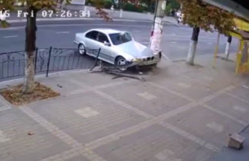 A fost la un pas sa fie zdrobit de o masina. Un tanar se plimba pe trotuar si tatona terenul. Se apropia de gard, se departa si parea a fi picat pe ganduri. la doar cateva secunde dupa ce s-a departat de gard o masina a venit in viteza si a intrat direct in stalp, la mai putin de un metru de el. Baiatul a scapat cu viata ca prin urechile acului.