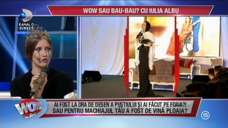 Cea care a impresionat-o total pe Iulia Albu a fost nimeni alta decât Andreea Marin: ”Nu mai este în veşnicele cămăşi plictisitoare ori fustele creion. Sper să nu aibă sutien. Îmi place foarte mult. Este de departe cea mai frumoasă ţinută în care am văzut-o pe Andreea Marin. Este un moment istoric. O voi ruga să nu mai poarte acei cercei, dar, în această seară, primeşte un trofeu WOW.