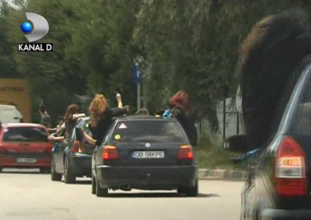 Elevii au cam uitat de regulile de circulatie si de propria siguranta. Adolescentii au defilat pe strazi cocotati pe geam. Se pare ca entuziasmul in exces le va aduce niste amenzi pe masura.