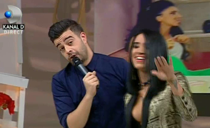 Adelina Pestritu a dansat pe melodia iubitului ei Speak. Imbracata sexy, intr-un compleu negru-auriu cu sacou si pantaloni largi si o bustiera care ii punea in evidenta decolteul generos, bruneta s-a unduit pe ritmurile melodiei cantata de viitorul ei sot.