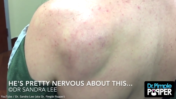 Doctorul Pimple Popper are un canal de youtube prin care impartaseste cu utilizatorii sai extractiile dezgustatoare pe care le face la cabinet. Printre acestea s-a numarat si cea a unui pacient care s-a prezentat la ea cu o umflatura imensa sub umarul stang.