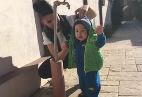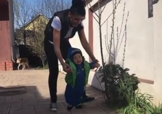 VIDEO Cat de scump e baietelul Andreea Mantea! David face primii pasi sustinut de mamica si se joaca in curte! Imaginile astea sunt adorabile