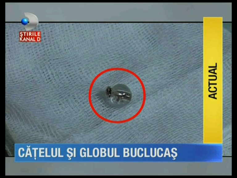 Medicii i-au facut o radiografie si au descoperit un corp strain in trupul animalutului. Abia dupa ce l-au scos au putut sa vada ca era vorba de un glob.