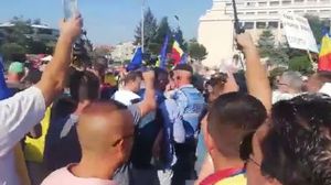 Câteva sute de persoane protestează la această oră în Piaţa Victoriei. În acest moment, are loc şi un conflict cu jandarmii din cauza unei maşini care nu este autorizată să staţioneze în zonă adusă de Cristian Dide.