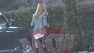 Denumita Victoria Beckham de Romania, sotia lui Dan Petrescu era imbracata casual, dar cu tocuri in picioare.Avea parul coafat, ca o adevarata diva, iar din portbagajul masinii a scos o plasa de cadouri.