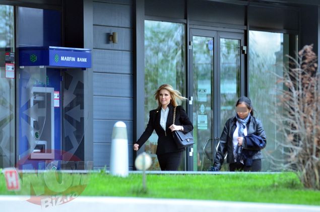Cel mai probabil, artista si-a dus fiul la cursuri de inot sau sport. Cantareata a luat si bona cu ea, in cladire, in timp ce sotul le astepta in masina. Bona ii cara cizmele si haina micutului, iar blonda avea grija sa-si duca poseta.