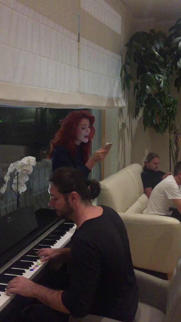 Zilele trecute, de exemplu, dupa trei concerte solicitante, frumoasa solista si instrumentistii ei s-au distrat in lobby-ul hotelului unde au fost cazati. A fost suficient sa gaseasca o pianina si au incins un adevarat show, spre bucuria angajatilor stabilimentului.