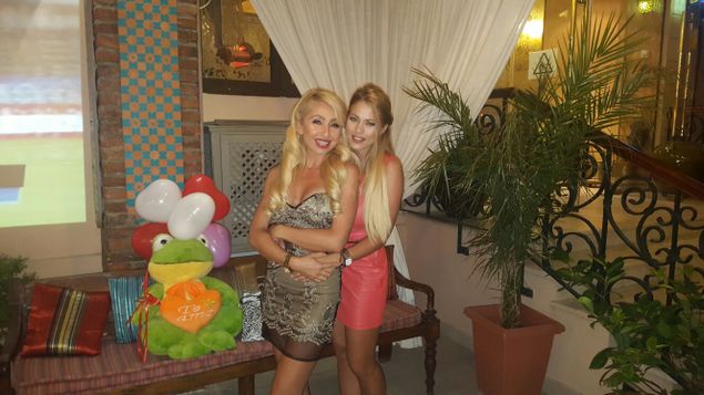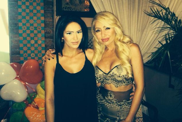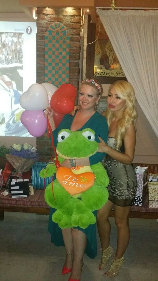 Sonia, alaturi de Roxana Nemes La aniversarea ei, Sonia a aratat extraordinar de bine intr-o tinuta, semnata chiar de ea, si compusa dintr-o fusta cu talie inalta de matase, scurta si transparenta, si o bustiera fitoasa.