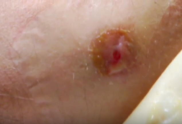 Si-a dat seama ca infectia este cauza de niste larve care si-au facut cuib chiar in pielea barbatului. Barbatul a fost de acord ca prietenul sau sa-i extraga vietatile din piele. Trei exemplare au fost scoase.