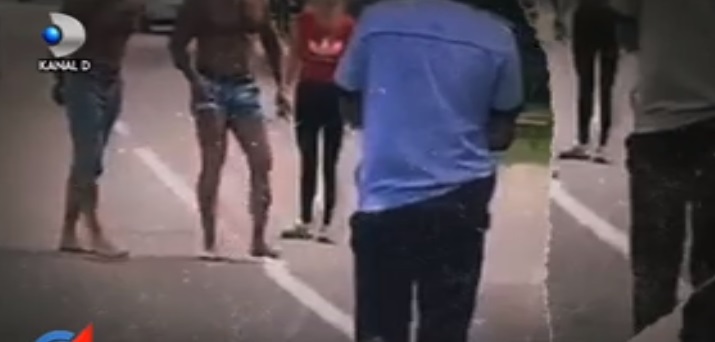La bustul gol și cu mușchii încordați, agresorii din imagini se comportă ca niște animale scăpate din cușcă. Se reped către cei doi agenți de poliție și îi provoacă la bătaie. Oamenii legii, deși înarmați cu pistoale, par înmărmuriți de teamă. Tot ce reușesc e să facă pași înapoi: