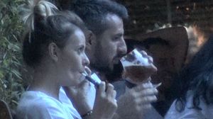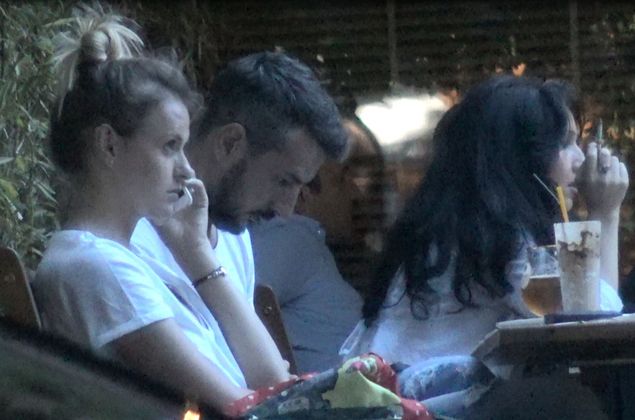 Cei doi au iesit sa se relaxeze la o terasa, dar au dat impresia ca mai degraba muncesc ore suplimentare. ##VIDEO441392##