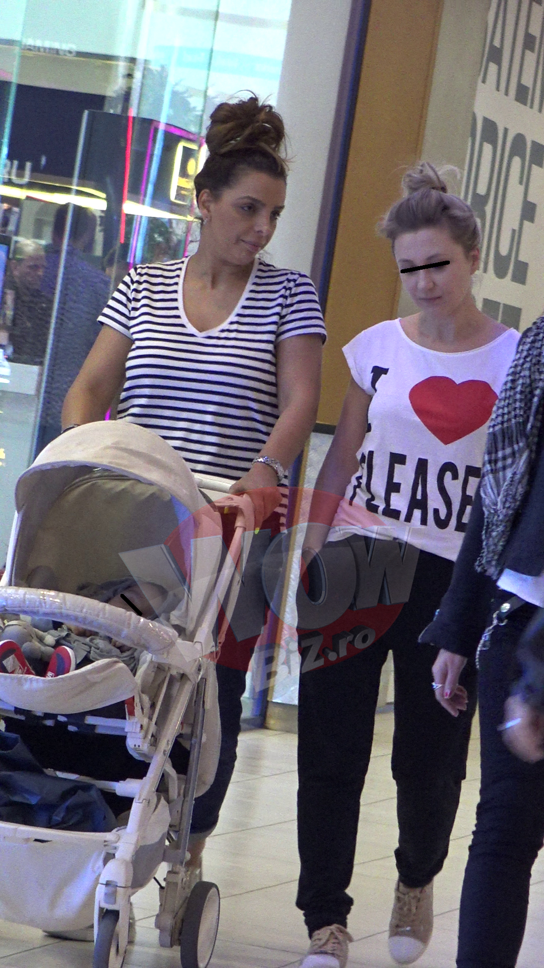 Paparazzii WOWbiz.ro au surprins-o, zilele trecute, intr-un mall din Capitala, impreuna cu bebelusul si cu o prietena. Madalina impingea caruciorul si mai arunca priviri in vitrinele magazinelor. Vedeta era aproape de nerecunoscut, ea fiind imbracata decent, cu o pereche de jeansi largi, un tricou, iar parul strans in coc in varful capului.