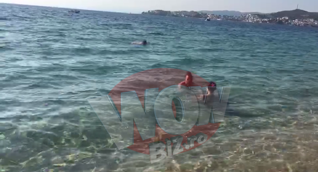 Departe de ochii curiosilor, Gabi si Tavi s-au balacit in valurile marii, singuri-singurei, au ras, au facut glume prin apa, s-au si imbratisat, semn ca iubirea lor este mare, chiar daca au trecut mai bine de trei ani de cand sunt impreuna.