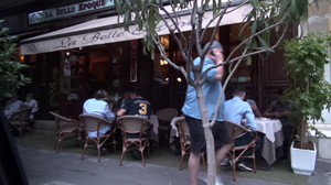 Paparazzii WOWbiz.ro l-au filmat pe simpaticul bucatar la o masa cu prietenii, in Centrul Vechi al Capitalei. In timpul discutiei, Sisoko tragea cu pofta dintr-o tigara electronica si sorbea pofticios dintr-un pahar.