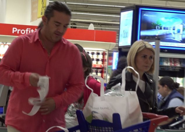 Zilele trecute, paparazzii WOWbiz.ro au reusit sa surprinda cateva imagini rare cu cei doi soti, in timp ce stateau la coada, la casele de marcat ale unui hiper-market cunoscut. Vedeta de televiziune si partenerul ei au umplut pana la refuz carutul, inghesuind nu mai putin de 5 pungi masive, doldora de produse!