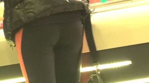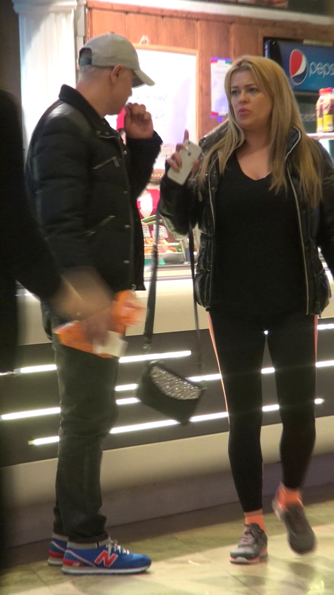 Aceasta a fost imortalizata la un mall, imbracata in colanti, geaca groasa si…o geanta cu sclipici. Ei bine, nu accesoriul ales vadit fara inspiratie este cireasa de pe tort, ci colantii care arata incontestabil ca protagonista noastra are cateva kilograme in plus si un posterior generos.