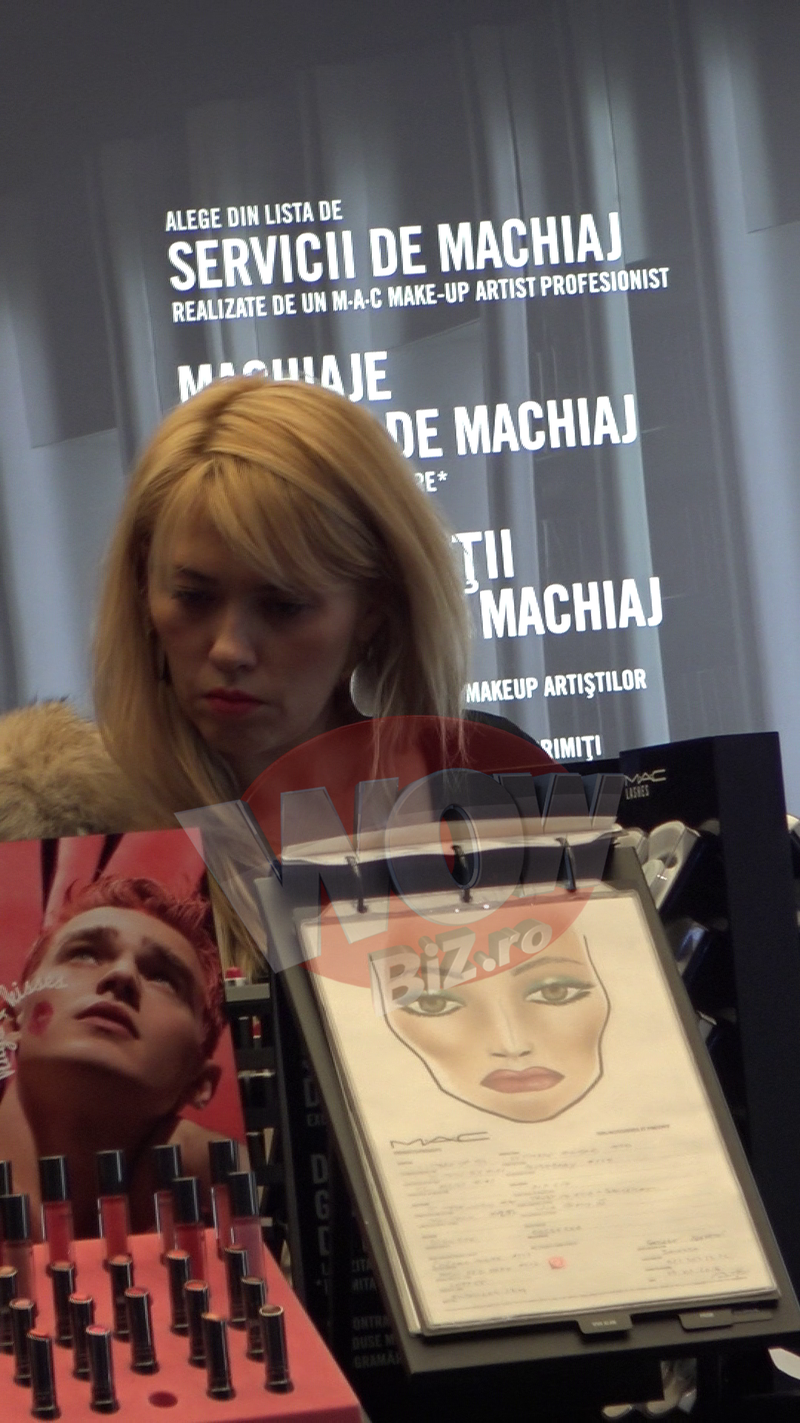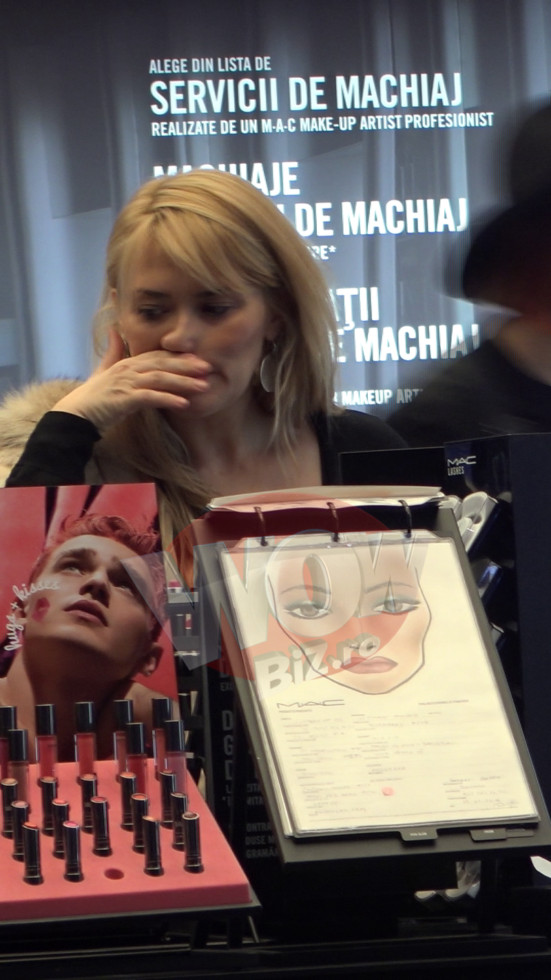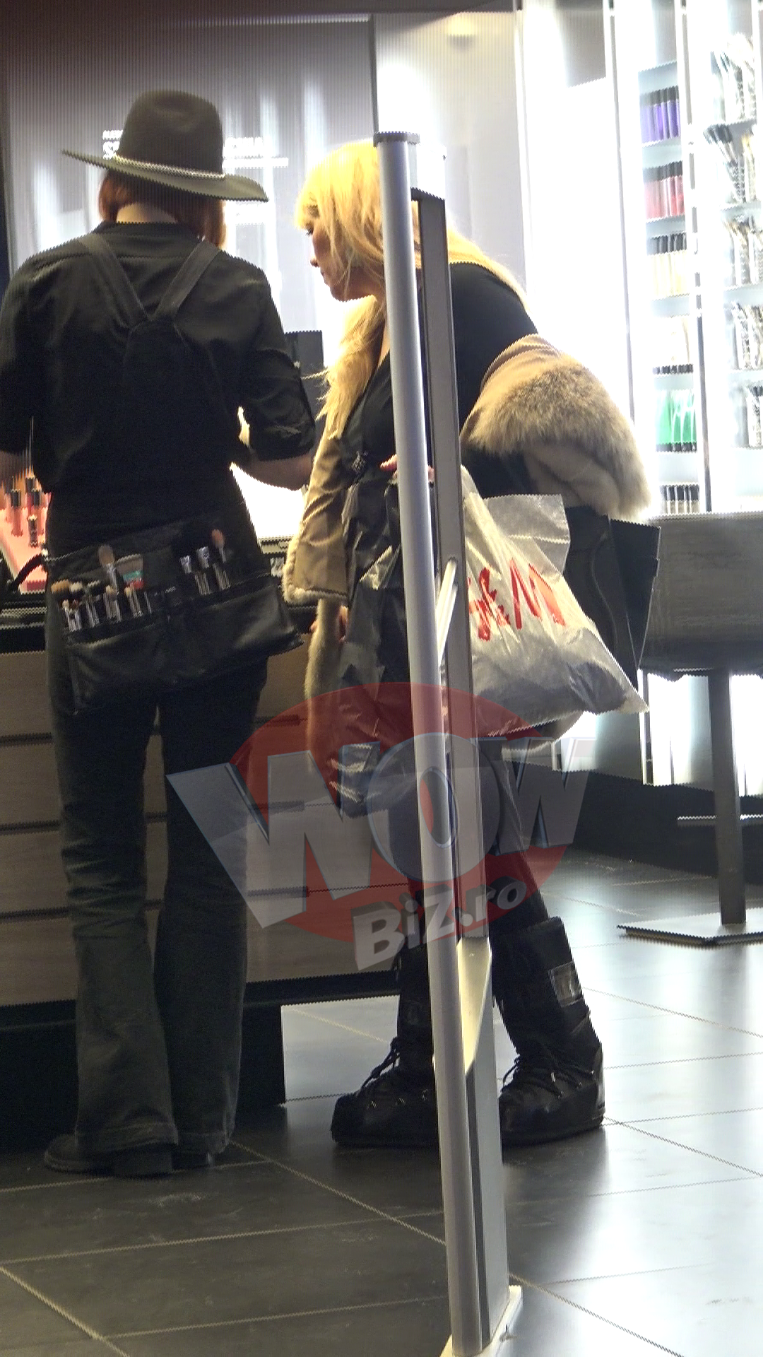 A stat mai bine de zece minute in magazin, unde a incercat mai multe nuante de ruj. La un moment dat, fosta prezentatoare tv si-a sters nasul, cu mana, neavand vreun servetel la indemana.