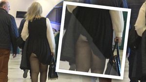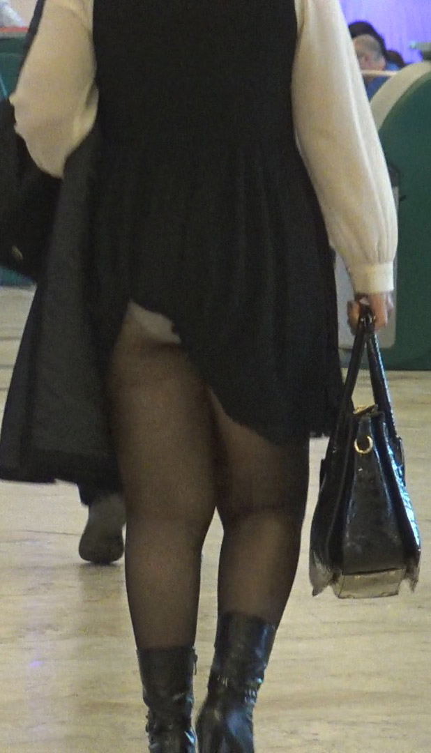 O femeie s-a ridicat de la una din cafenelele mall-ului si, fara sa bage de seama, fusta i s-a prins de ciorap, jucandu-i o festa de zile mari. Imaginile vorbesc de la sine despre penibilul situatiei, bucuresteanca defiland minute bune pe culoarele centrului comercial cu "dorsalul" si o pereche de chiloti albi, la vedere!