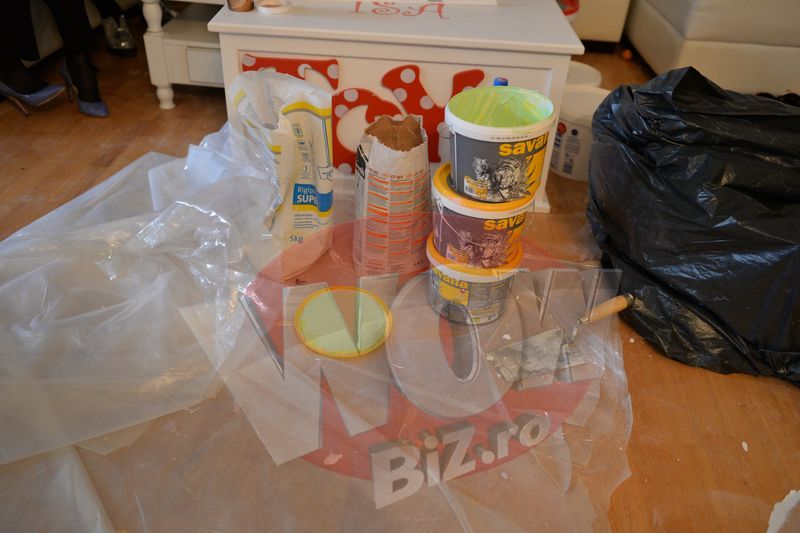 Casa Oanei Roman e plina de recipiente care contin vopsele chimice“In sufragerie nu avem mare lucru sa va aratam pentru ca aceasta va fi zugravit si aranjat la final. Televizorul stim insa ca va trebui asezat pe o energie de prosperitate. In dormitorul meu, Cristina Groza mi-a spus ca va trebui ca un perete sa fie in culoare lila, o lavanda deschisa. Un singur perete va fi lila, restul vor fi albi. Noi inainte aveam patul asezat in asa fel incat dormeam cu capul acolo si aveam fereastra pe partea stanga. Cristina ne-a recomandat ca macar o perioada sa orientam patul invers, adica sa stam cu capul spre geam si privirea spre acest perete. Sa reconfiguram totul”, ne-a spus Oana Roman.