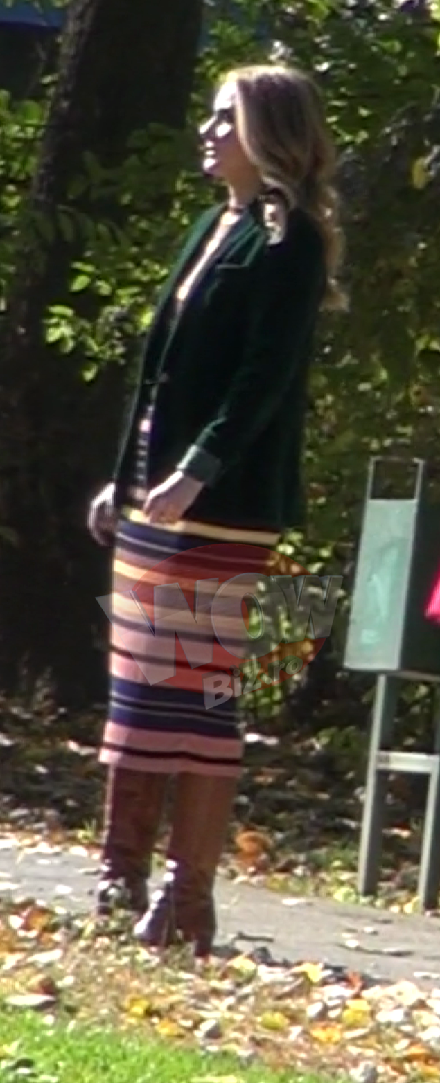 Si-a pus o rochie care sa ii mascheze burta Imbracata elegant, in stilul ei, cu o rochie clasica, cu o palma peste genunchi, multicolora, si in dungi, peste care isi pusese un sacou cambrat, de culoare verde, Alina si-a mascat sarcina cat a putut de mult.