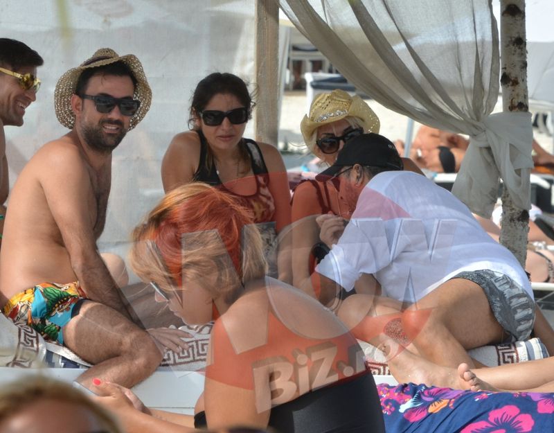 Nu inainte de a-l hrani pe designer cu un desert savuros pe care i l-a servit direct in gura, cu lingurita. Distractia a continuat si dupa-amiaza, la un club fitos.