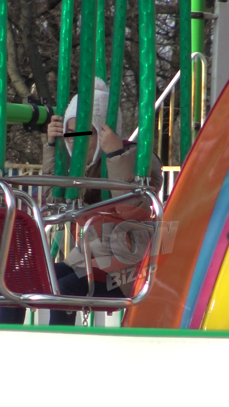 Fetele au dat o tura de parc, dupa care s-au oprit la „coltisorul” de distractii, destinat copiilor. Micuta s-a dat in tiribombe, evident atent supravegheata de mama sa.