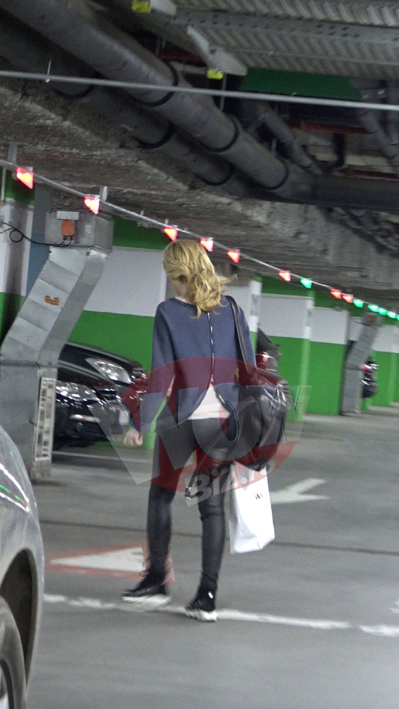 Imbracata intr-o pereche de pantaloni, imitatie de piele, care ii veneau foarte strans pe fund si ii scoteau in evidenta formele, blondina a reusit sa impresioneze intr-un mod placut. Foarte rar vedeta a aparut in public asa!