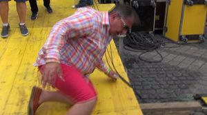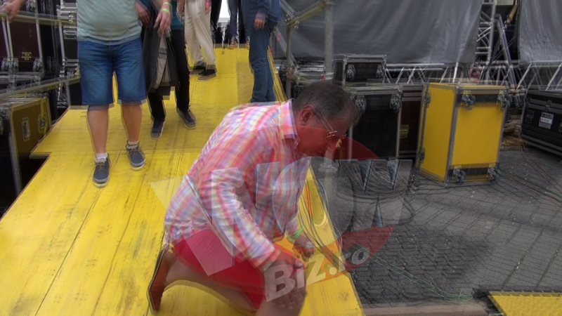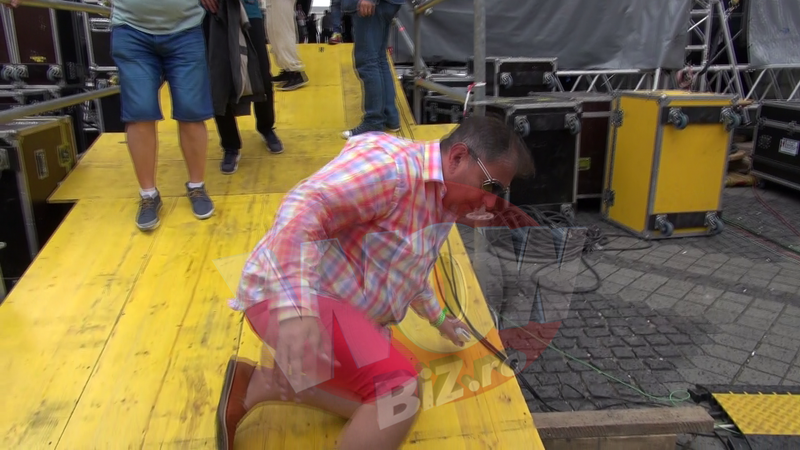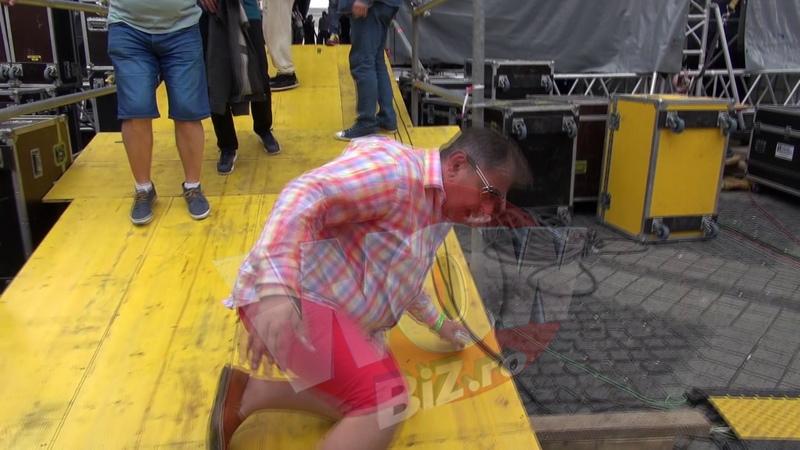 Pasarela pe care se facea coborarea de pe scena era umeda din cauza ploii, un detaliu care i-a scapat total lui Bodo. Nici nu a apucat sa faca doi pasi ca acesta s-a dus de-a berbeleacul, in vazul tuturor, momentul fiind surprins, in exclusivitate, de catre paparazzii WOWbiz.ro. Toti cei din jur au inghetat de spaima vazandu-l pe Bodo la pamant.