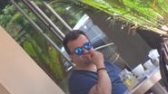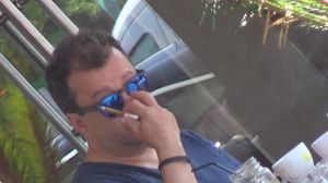 Accesorizat cu o pereche de ochelari de soare moderni, cu o lentile albastru-metalic, actorul era de nerecunoscut. ##VIDEO447470##
