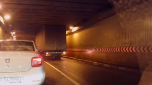 VIDEO Haos in pasajul Unirii din Capitala! Un TIR a ramas intepenit! Vezi primele imagini!
