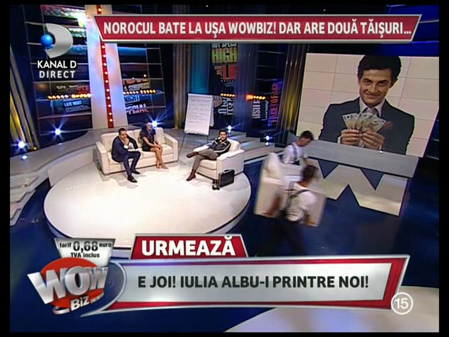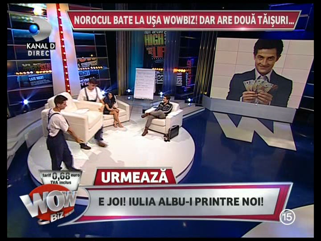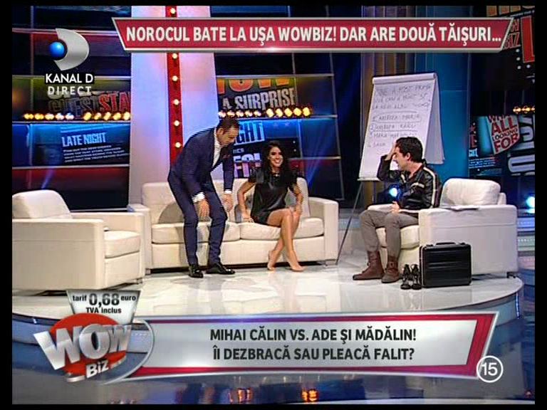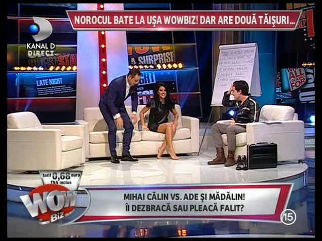 Mihai Calin a venit in platoul emisiunii WOWbiz pentru a prezenta conceptul noii sale emisiuni. El i-a provocat pe Adelina si Madalin sa parieze fiecare cate ceva.