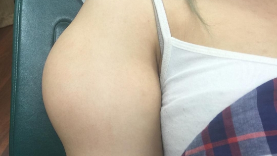 Stacy s-a speriat ingrozitor cand a vazut ca in partea de sus a bratului drept ii aparuse o umflatura imensa care nu mai trecea. Femeia si-a facut programare la celebra Sandra Lee.