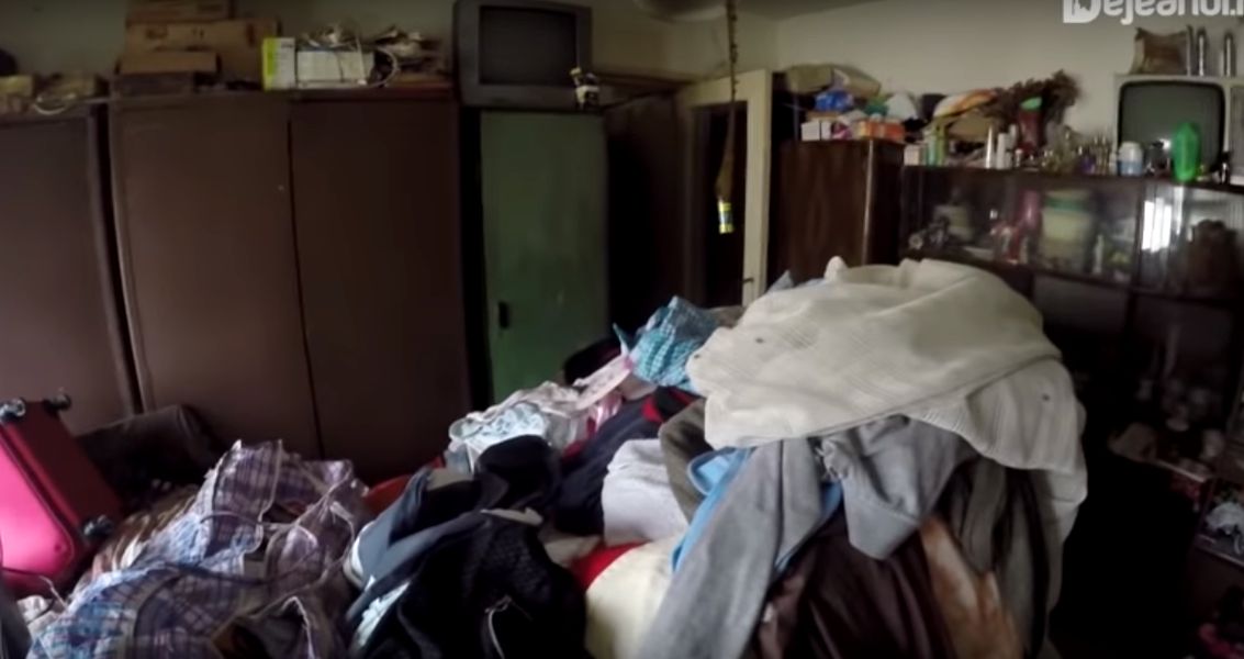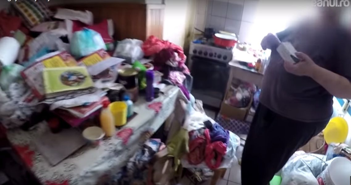 Întregul apartament este un focar de infecție, plin de muște și viermi. Stive de lucruri nefolositoare sunt așezate din podea până în tavan.