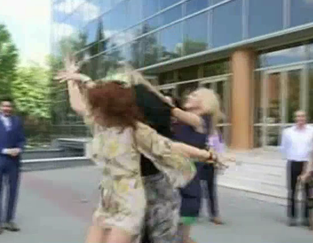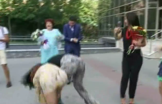 Invitata de onoare a fost artista Elena Merisoreanu care le-a cantat indragostitilor ca pentru inceput de drum. Pentru ca nunta va avea loc la anul, Sonia a vrut sa arunce buchetul la iesirea din Institutie. Momentul a fost de departe cel mai savuros.