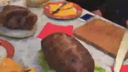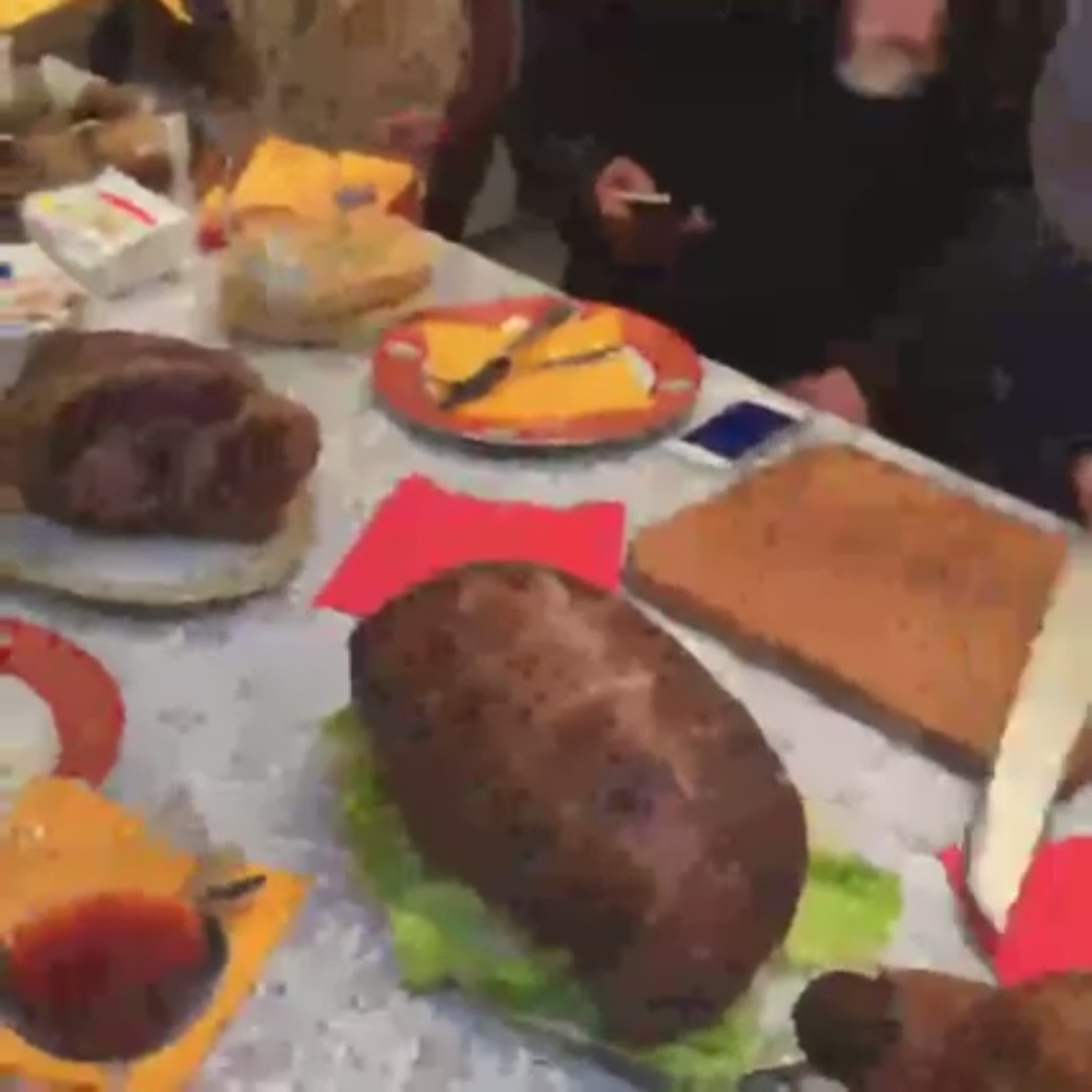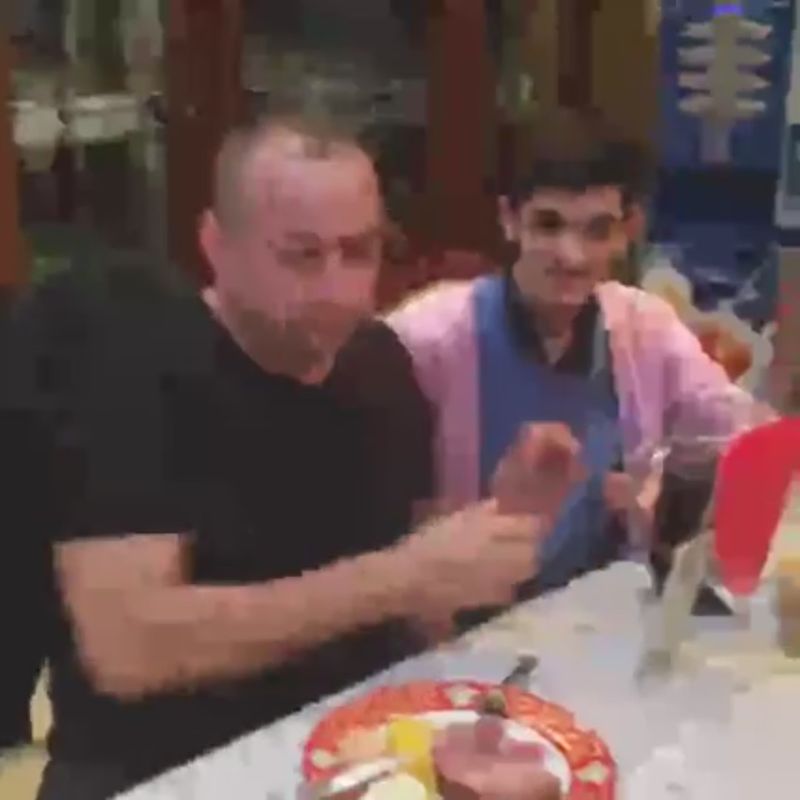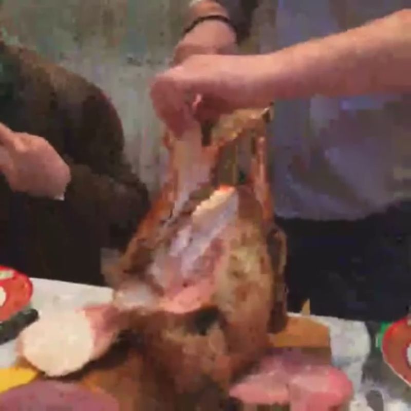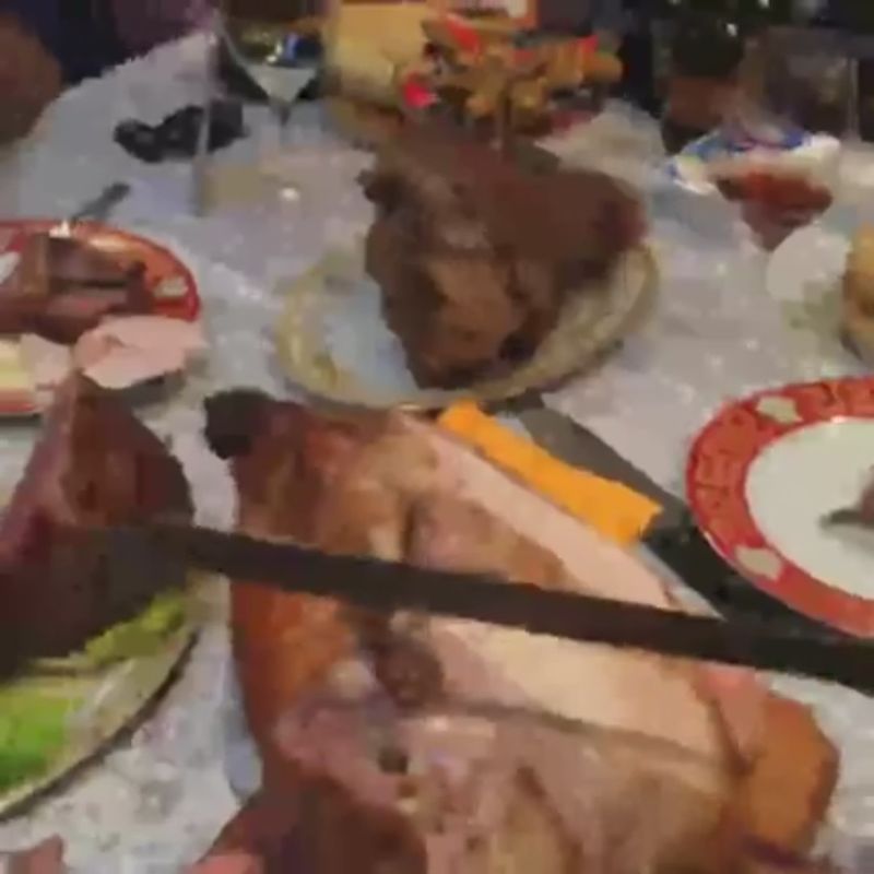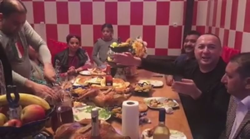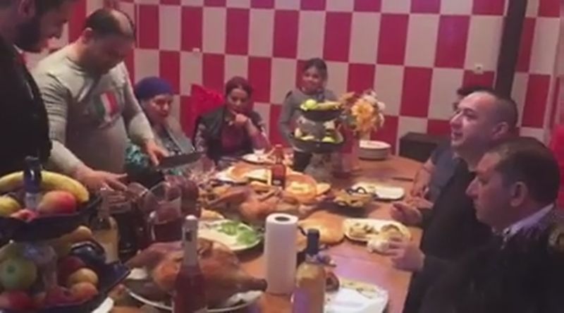 Leo s-a si filmat in timp ce era la masa, cu rromii, si manca ranza, mamaliga, fripturi, curcani la cuptor si alte bunatati care i se pregatesc mereu cand ajunge la Strehaia.