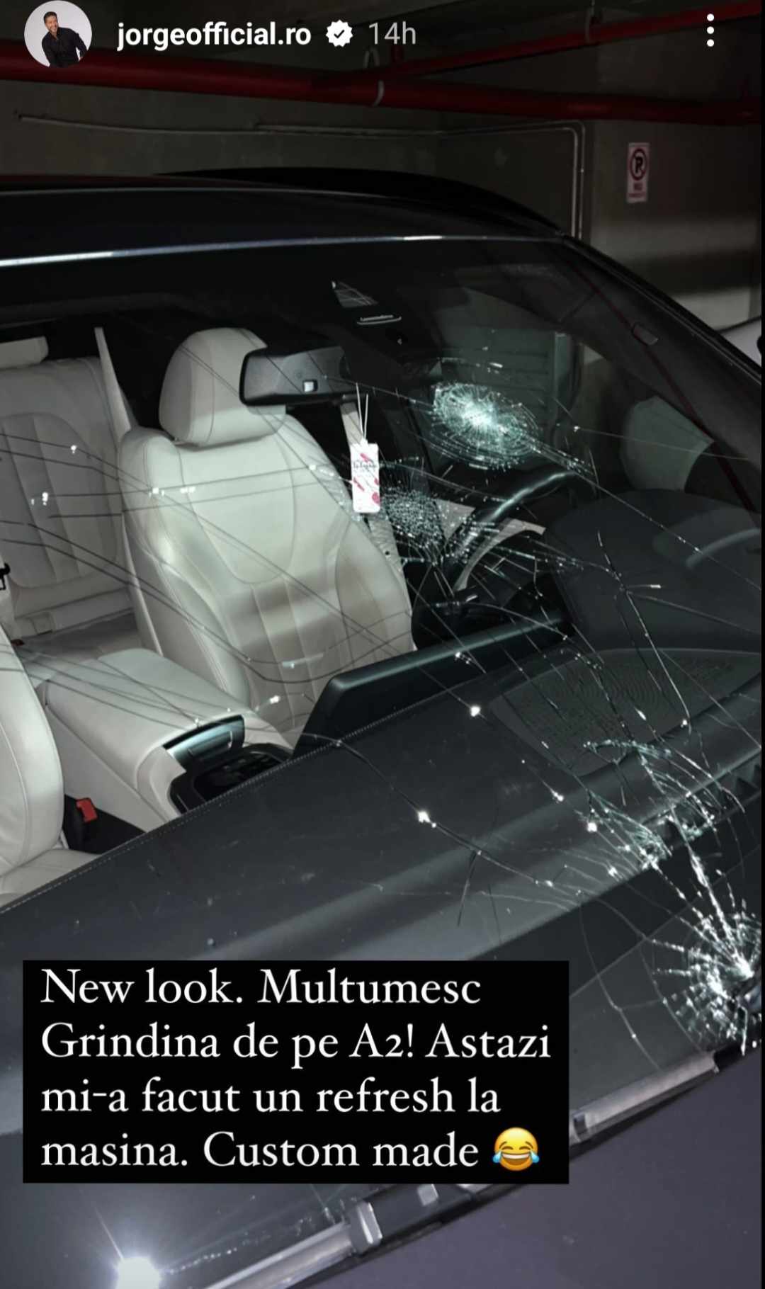 „New look. Mulțumesc Grindina de pe A2! Astăzi mi-ai făcut un refresh la mașină. Custom made”, a scris Jorge la o postare de pe rețelele de socializare.