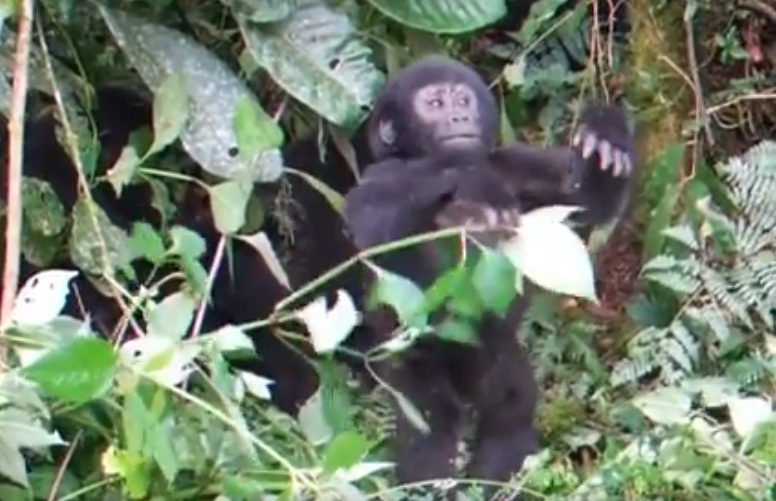 VIDEO Momentul amuzant in care un pui de gorila incearca sa se bata cu pumnul in piept