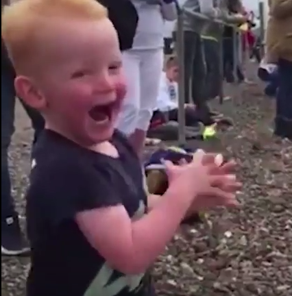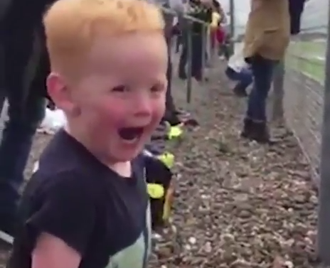 Reactia pustiului care a participat alaturi de tatal sau pentru prima data la o cursa pentru motociclete a devenit virala. Micutul nu si-a putut ascunde incantarea, a gesticulat, a batut din palme si a ras isteric de fiecare data cand un motor trecea in mare viteza pe langa el.