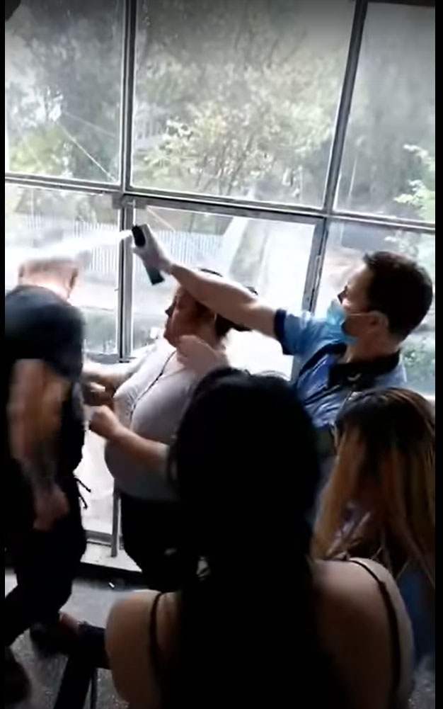 Politistul, deranjat de limbajul folosit de scandalagiu si de atitudinea lui, a scos spray-ul lacrimogen si a pulverizat in fata, dupa care l-a condus la sectie.