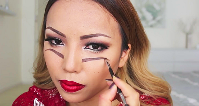 Pentru ca se apropie Halloween, tanara s-a gandit sa faca un tutorial de make-up foarte inventiv. Chiar i-a reusit pentru ca finalul este genial. Prima data si-a desenat sprancene, apoi ochi carora le-a aplicat si gene false pentru un plus de efect, iar in barbie si-a facut cu ruj o alta gura. Vezi rezultatul final pe kfetele.ro