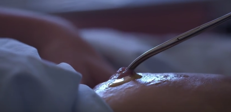 O umflatura imensa i-a aparut pe linia bikinilor si a mers de urgenta la medic. Cadrul medical si-a dat seama ca o larva se ascundea sub pielea tinerei si a incercat sa o scoata. In primul rand a acoperit umflatura cu un gel menit dupa care a asteptat sa-si faca efectul.
