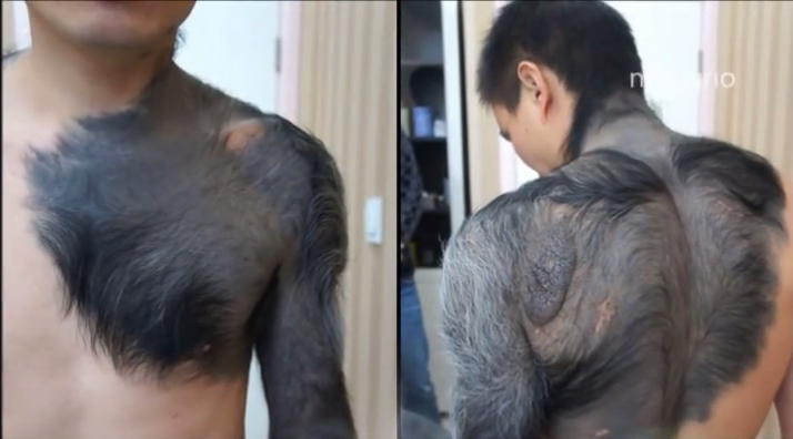 Zhang Hongming s-a nascut un un semn din nastere imens. Barbatul pare ca se transforma pe zi ce trece, intr-un varcolac. Se pare ca astfel de semne sunt provocate de un dezechilibru la nivelul celulelor pielii. Pielea barbatului e acoperita in partea de sus a pieptului si pe umeri de un par negru, gri pe alocuri, iar pielea are aspect de scoarta de copac.