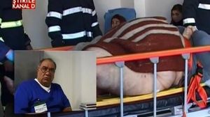 Barbatul de 46 de ani cantareste peste 250 de kilograme, adica de trei ori greutatea unui om normal. A fost nevoie de interventia pompierilor pentru a-l putea scoate din casa. Sase oameni au tinut de targa speciala care a fost la un pas sa cedeze.