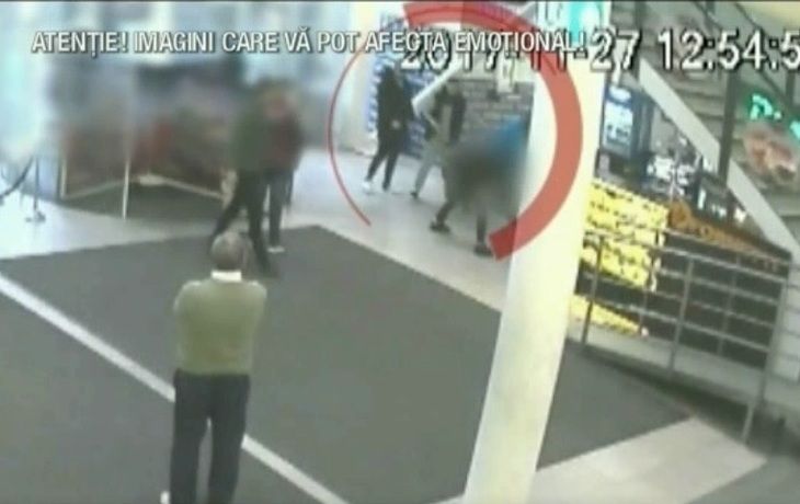 Bataia are loc intr-un centru comercial din Iasi, sub ochii clientilor care intra in magazin. 4 indivizi sunt pusi pe scandal- cel imbracat in negru este lovit de doi barbati, cu pumnii si cu picioarele, apoi este aruncat in bratele celui de-al treilea bataus, care il loveste cu o geaca.