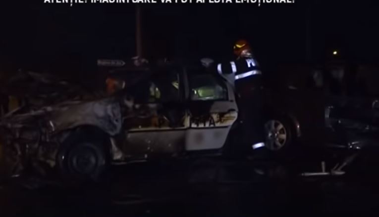 Mașina poliției fusese lovită și proiectată într-un stâlp de un autoturism, care ieșise de pe un drum lateral. Imediat, aceasta a luat foc. Pe scaunele din față erau doi polițiști, iar în spate, un jandarm, toți inconștienți și blocați înăuntru.